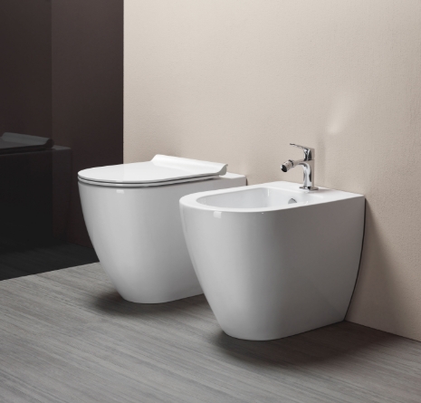 SERIE SANITARI PURA A TERRA BIANCO OPACO - WC + SEDILE + BIDET + FISSAGGI